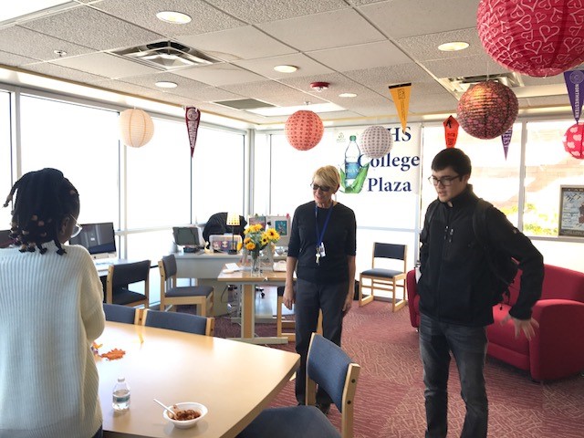 This unique partnership arose from the efforts of our former, now retired, Director of Admissions, Larry Clendenin. He knew that the district was in dire need of some broad college counseling support. Over the course of several years, Larry formed a strong friendship with Missy Gurule, Santa Fe High School’s part-time college counselor. Now every Wednesday and Thursday (11am-2pm), College Plaza is bustling with students, college reps, and chrome books!