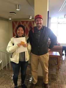Registration included stops at the Financial Aid Office, Student Accounts, Housing, Student Health, and the Registrar’s Office. Michael Rodriguez, our Director of Financial Aid, is seen standing next to two students from his first January Freshman class! This was a bittersweet moment, as Mr. Rodriguez is retiring this coming June after working at the college for over 30 years! First and last JF class. To the right of Mr. Rodriguez, stands Susan Olmsted (SF’88), our Associate Director of Graduate Admissions and next to Susan is Randall Hollensbe (SF’88), our Associate Director of International Student Recruitment and Admissions.