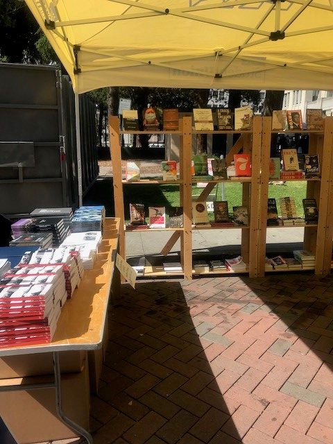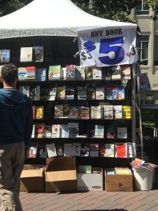 Third, I have never met a Johnnie that could pass up a book sale. I happened upon a whopper of a book sale and festival while I was visiting Berkeley High School to meet with high school students about applying to colleges. It was the 3rd Annual Bay Area Book Festival! Tables and tables of books, authors talking and signing books, kids eating treats, and just so many books. It was all so wonderful to see.