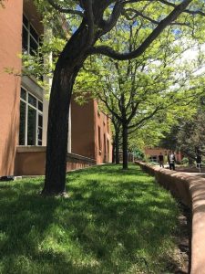 Many people hear “high desert” and think Wile E. Coyote; in truth, we get snow, rain, and four full seasons in Santa Fe. The city is more complicated in terms of climate, precipitation, and vegetation. Here are a few photos I took just walking back from the Student Health Office today.