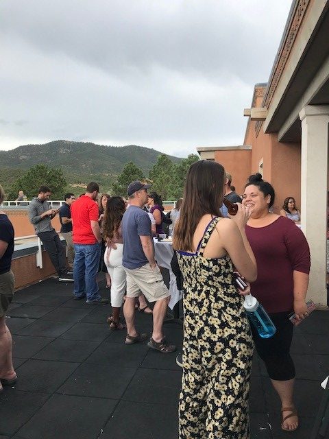 St. John’s College played host to five sessions of workshops for International Baccalaureate (IB) teachers from all over the world, Australia, Thailand, India, Ukraine, Canada, and many areas in the United States. Each workshop included around 200 IB teachers, mostly from Diploma Programme schools, but there were also many from MYP and PYP schools. The only United World College (UWC) in the United States is located just an hour away from St. John’s, in Montezuma, NM. The UWC USA organizes the training for these IB teachers. Each workshop lasted four days and includes hours of classroom and curriculum training. The IB teachers get to learn about the IB grading, as well as about content specific to their area, like Theory of Knowledge (TOK), Physics, Mathematics, Language and Literature, and the Arts. After the workshops on the second day, the Admissions Office hosted a reception for the IB teachers. Great conversations between teachers spilled over from the classrooms, and new ones were started between St. John’s faculty members, admissions counselors, and the IB teachers. Beer, wine, cheese, fruit, salsa, and other nibbles were on hand for everyone to enjoy against the backdrop of the Sangre De Cristo mountains.