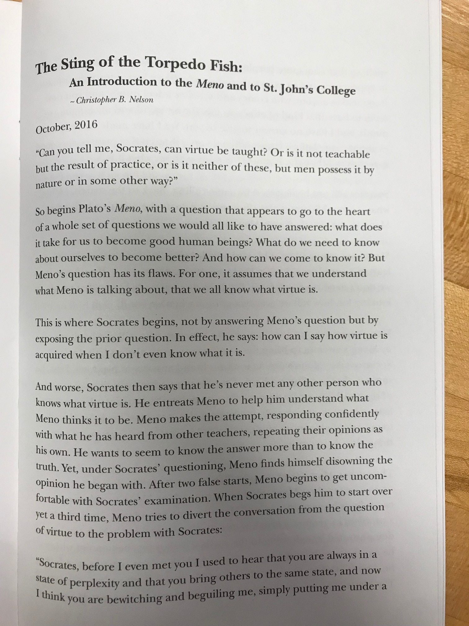 Lastly, each IB teacher received a special copy of Plato’s Meno from the college! We chose the Meno as the perfect gift for the IB teachers because it is the quintessential work about learning and knowledge, and most importantly about critical inquiry. St. John’s College and IB both “encourage students of all ages to think critically and challenge assumptions.”